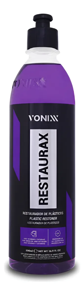 Restaurador de Plásticos. Renova e restaura superfícies plásticas internas e externas, como para-choques, painéis, laterais de portas e até capotas marítimas. Protege contra os efeitos do tempo e evita a degradação precoce do material.